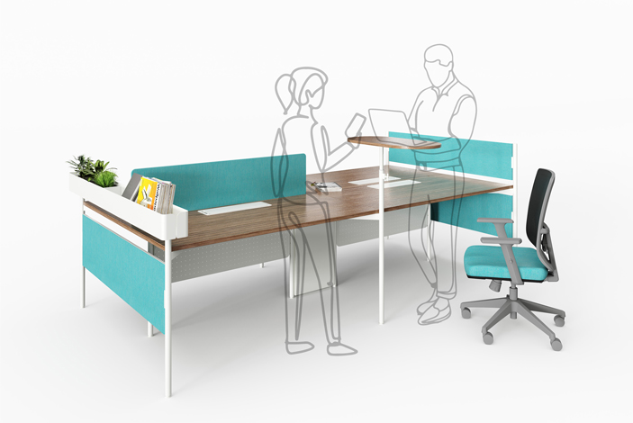 Supplementary table shared surface. Placed alongside bench, allows for individual focus and a healthy stand-up work position.