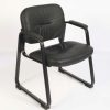 - Curved arms with padded arm rests easily clear front edges when pulled close to table